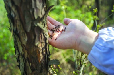 大量投放花絨寄甲可有效治理我國(guó)林業(yè)的松材線蟲病。而安慶市宜秀區(qū)松林面積11.25萬(wàn)畝,2005年首次發(fā)生松材線蟲病。此前,宜秀區(qū)森防戰(zhàn)人員通過(guò)人工、生物、化學(xué)等多種方式聯(lián)合治理,使樹木死亡率逐年下降,不過(guò)疫情仍然未徹底得到控制。昨日,11萬(wàn)只花絨寄甲“特工”來(lái)此,準(zhǔn)備空投“作戰(zhàn)”。