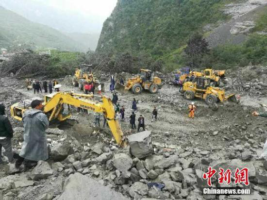 6月24日凌晨6:00許,阿壩州茂縣疊溪鎮(zhèn)新磨村發(fā)生高位山體垮塌。四川省政府新聞發(fā)言人表示,初步統(tǒng)計,造成46戶農(nóng)民被掩埋、141人失聯(lián),河道堵塞2公里,1600余米道路被掩埋。據(jù)現(xiàn)場群眾提供信息,目前,救援人員已挖出三名被埋人員,其中幸存兩人。圖為大型機械已趕往現(xiàn)場,投入救援。