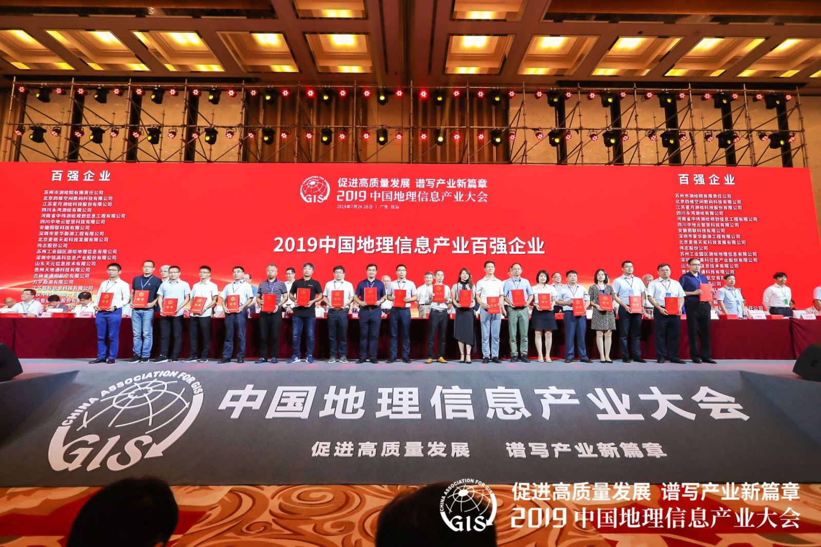 7月25日,2019年中國地理信息產(chǎn)業(yè)大會在中國珠海開幕。大會發(fā)布《2019中國地理信息產(chǎn)業(yè)報告》并表彰了2019中國地理信息產(chǎn)業(yè)百強企業(yè),頒發(fā)了2019地理信息科技進步獎及2019地理信息產(chǎn)業(yè)優(yōu)秀工程獎。