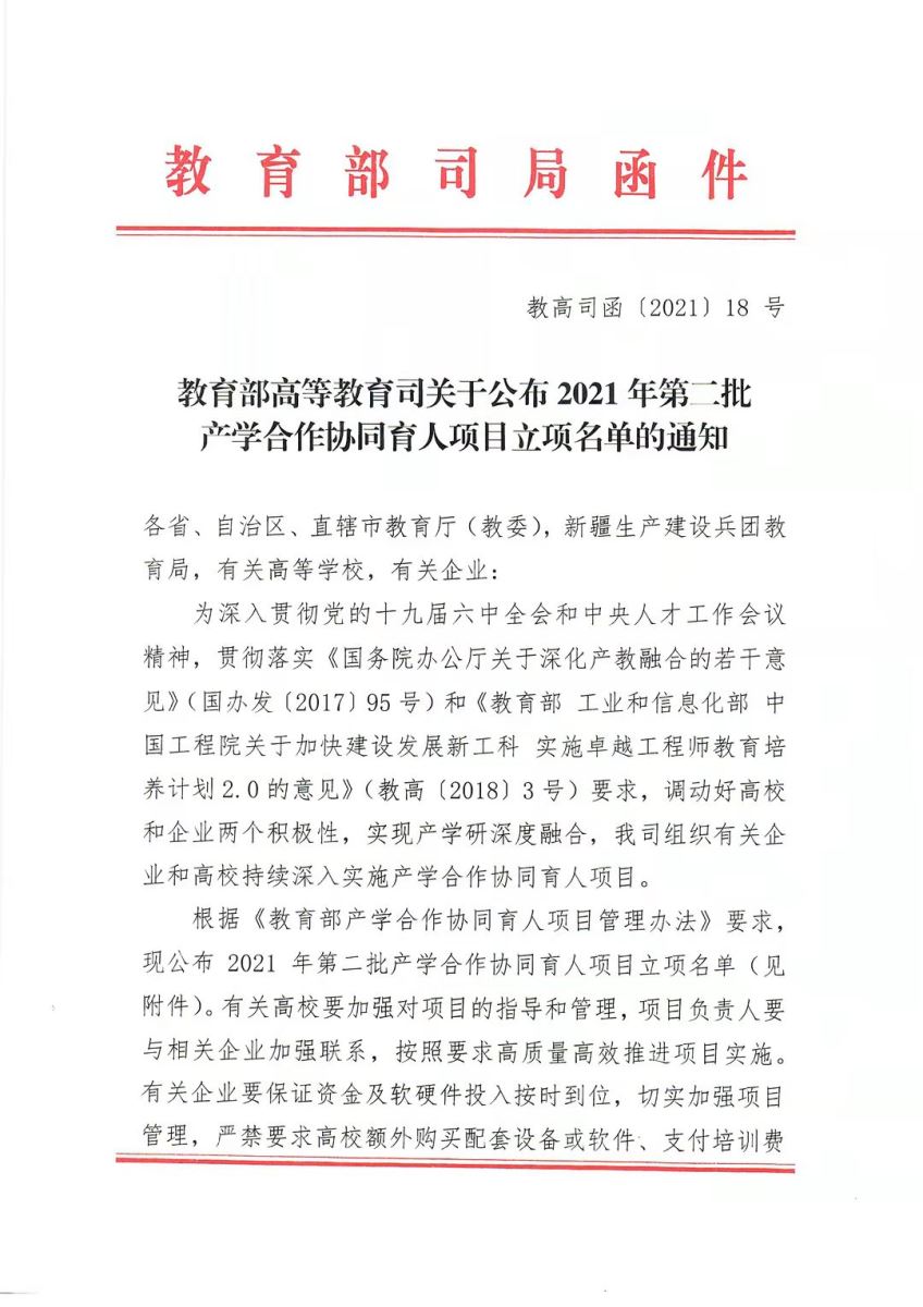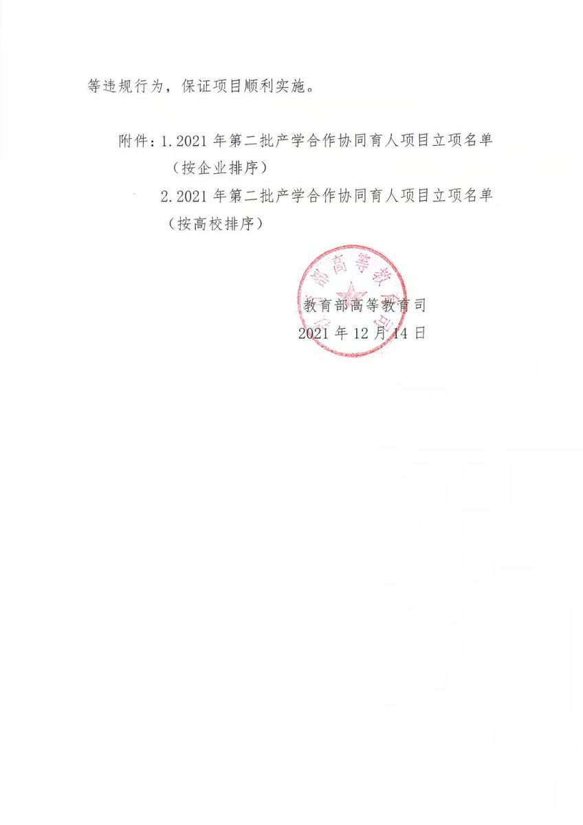 12月14日,《教育部高等教育司關(guān)于公布2021年第二批產(chǎn)學合作協(xié)同育人項目立項名單的通知》正式印發(fā)。