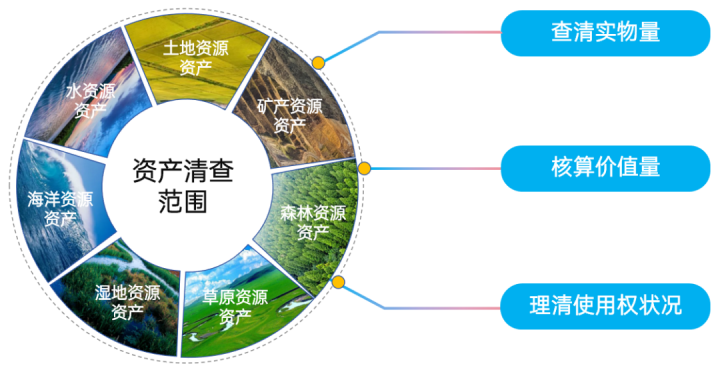 《工作方案》明確本次資產(chǎn)清查范圍為全民所有土地、礦產(chǎn)、森林、草原、濕地、水、海洋等7類自然資源資產(chǎn)。資產(chǎn)清查主要工作內(nèi)容包括:查清實物量、核算價值量、理清使用權(quán)狀況三項任務(wù)。