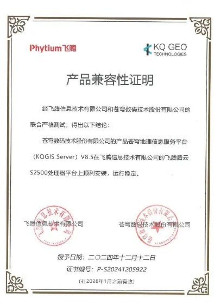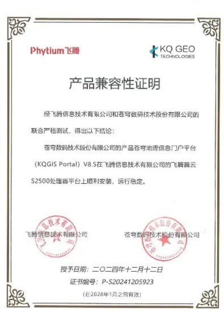 蒼穹數(shù)碼和飛騰的產(chǎn)品適配認證,是雙方共同開展的一項覆蓋產(chǎn)品功能完整性、性能穩(wěn)定性以及安全性等多個關(guān)鍵維度的測試活動。經(jīng)過嚴(yán)謹和細致的測試,證明KQGIS在飛騰環(huán)境上運行流暢,性能卓越,能夠完全滿足用戶對于關(guān)鍵性應(yīng)用的高標(biāo)準(zhǔn)需求。本次適配認證也意味著蒼穹數(shù)碼在國產(chǎn)環(huán)境廣泛兼容性上又得到了進一步提升,能夠為用戶提供更加優(yōu)秀的GIS產(chǎn)品。