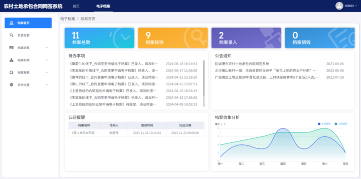 蒼穹二輪延包檔案管理系統(tǒng),積極響應(yīng)《第二輪土地承包到期后再延長30年試點工作檔案管理辦法》規(guī)定,實現(xiàn)了二輪延包檔案的統(tǒng)一管理、分級實施、分類存放和集中保管。覆蓋了二輪延包過程中的文件材料收集、整理、歸檔、保管和利用等各個環(huán)節(jié),以科技的力量確保每一份檔案都“有據(jù)可查、有跡可循”。