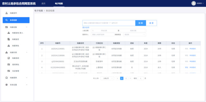 在國家戰(zhàn)略的宏偉藍(lán)圖下,蒼穹數(shù)碼土地承包經(jīng)營權(quán)二輪延包系列產(chǎn)品檔案管理系統(tǒng)已上線應(yīng)用,檔案管理系統(tǒng)不僅為政府管理部門提供了科學(xué)決策的重要依據(jù),更為保障電子檔案安全筑起了一道堅實的防線。