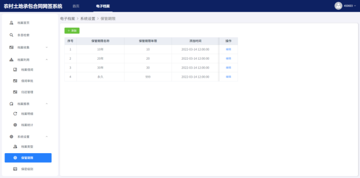 基于《二輪延包檔案管理辦法》,系統(tǒng)智能設(shè)置檔案類型、檔案保管期限、密級和材料歸檔內(nèi)容范圍,讓檔案的“生命周期”管理更加科學(xué)。同時系統(tǒng)支持手動或自動鑒定到期檔案,進(jìn)行延期或銷毀處理,確保檔案管理的規(guī)范性與安全性。
