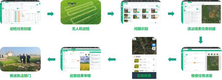 借助無人機低空監(jiān)測能力,結(jié)合蒼穹低空AI引擎,構(gòu)建“空天地視網(wǎng)”智能感知體系,以AI遙感智能解譯、AI視頻智能識別為手段,全方位精準(zhǔn)捕捉涉耕問題,并形成多源問題識別、實地巡查核實、審核對接處置管理閉環(huán),確保各類涉耕問題早發(fā)現(xiàn)、早制止、早處理。