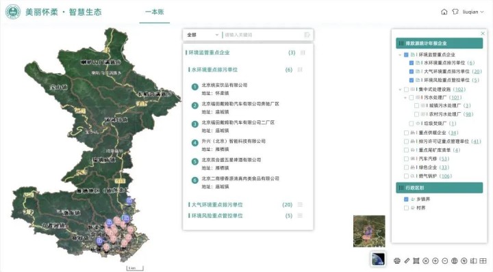 "一本賬"堪稱懷柔生態(tài)環(huán)境的"數(shù)字檔案庫(kù)"。它整合全區(qū)環(huán)境監(jiān)管重點(diǎn)單位、排污許可重點(diǎn)管理單位、集中式治理設(shè)施等污染源信息,按行業(yè)類型、排放特征、地理分布等維度統(tǒng)一登記,形成涵蓋企業(yè)基本信息、排污許可參數(shù)、治污設(shè)施臺(tái)賬的標(biāo)準(zhǔn)化檔案庫(kù)。工作人員通過(guò)智能檢索,30秒內(nèi)就能調(diào)出某企業(yè)的"污染全息畫像",從而實(shí)現(xiàn)精準(zhǔn)有效監(jiān)管。