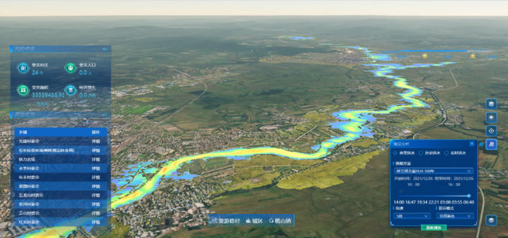 融合水文水動力專業(yè)模型,預(yù)演洪水演進(jìn)過程,智能分析淹沒范圍內(nèi)受災(zāi)狀況,助力優(yōu)化防洪應(yīng)急調(diào)度方案,提升智能調(diào)度能力。