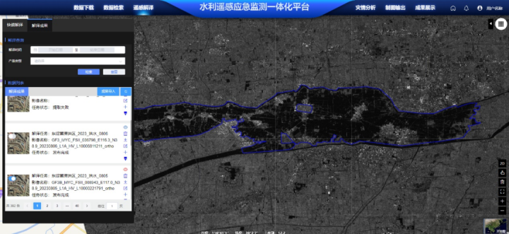 (2)支持國內(nèi)外主流雷達(dá)、光學(xué)衛(wèi)星數(shù)據(jù)下載、預(yù)處理、入庫、檢索全鏈路、智能化管理,提升衛(wèi)星數(shù)據(jù)處理、應(yīng)用效率,為應(yīng)急救災(zāi)調(diào)度提供決策支持。