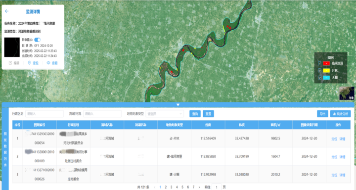基于“四亂”智能提取模型,平臺(tái)能夠動(dòng)態(tài)監(jiān)測(cè)河湖水域岸線圈占、圍墾、采砂場(chǎng)、岸灘邊取(堆)土場(chǎng)、垃圾堆放、建筑物等疑似問(wèn)題,及時(shí)發(fā)現(xiàn)亂占、亂建、亂堆、亂采等違規(guī)行為,顯著提升河湖監(jiān)管與執(zhí)法處置能力,守護(hù)河湖水域的健康與可持續(xù)發(fā)展。