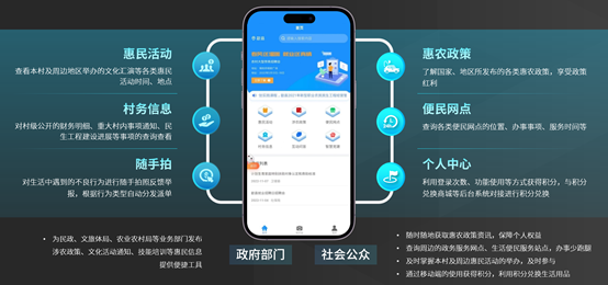 4、“便民化”服務(wù)直達(dá):平臺(tái)延伸至移動(dòng)端,為村民提供政策咨詢、辦事指南、問題上報(bào)、村務(wù)公開等便捷服務(wù)通道,有效拉近了干群距離,提升了村民的參與感和獲得感,讓數(shù)字紅利真正惠及千家萬戶。
