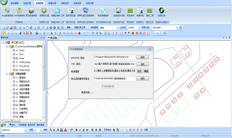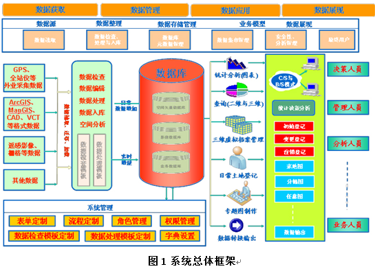 主要包括數(shù)據(jù)采集、數(shù)據(jù)轉(zhuǎn)換、數(shù)據(jù)檢查與處理、數(shù)據(jù)入庫與維護(hù)、數(shù)據(jù)變更、成果輸出等功能,滿足對城鎮(zhèn)地籍?dāng)?shù)據(jù)庫的管理與操作。