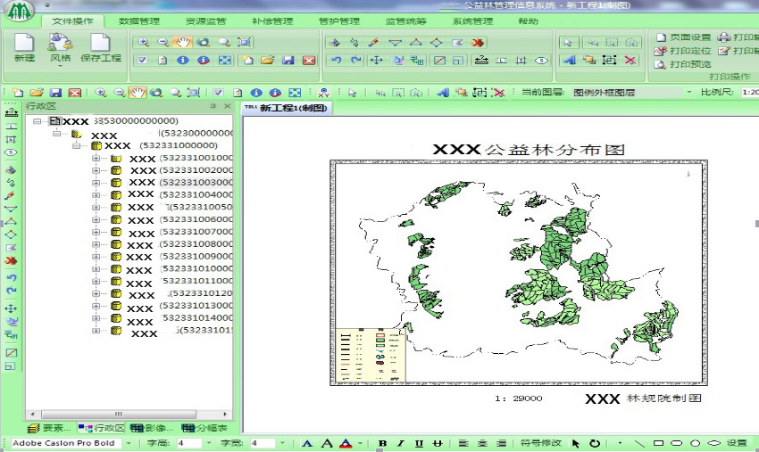 按照市、縣等行政區(qū)劃制作公益林分布圖,生成公益林統(tǒng)計(jì)表。